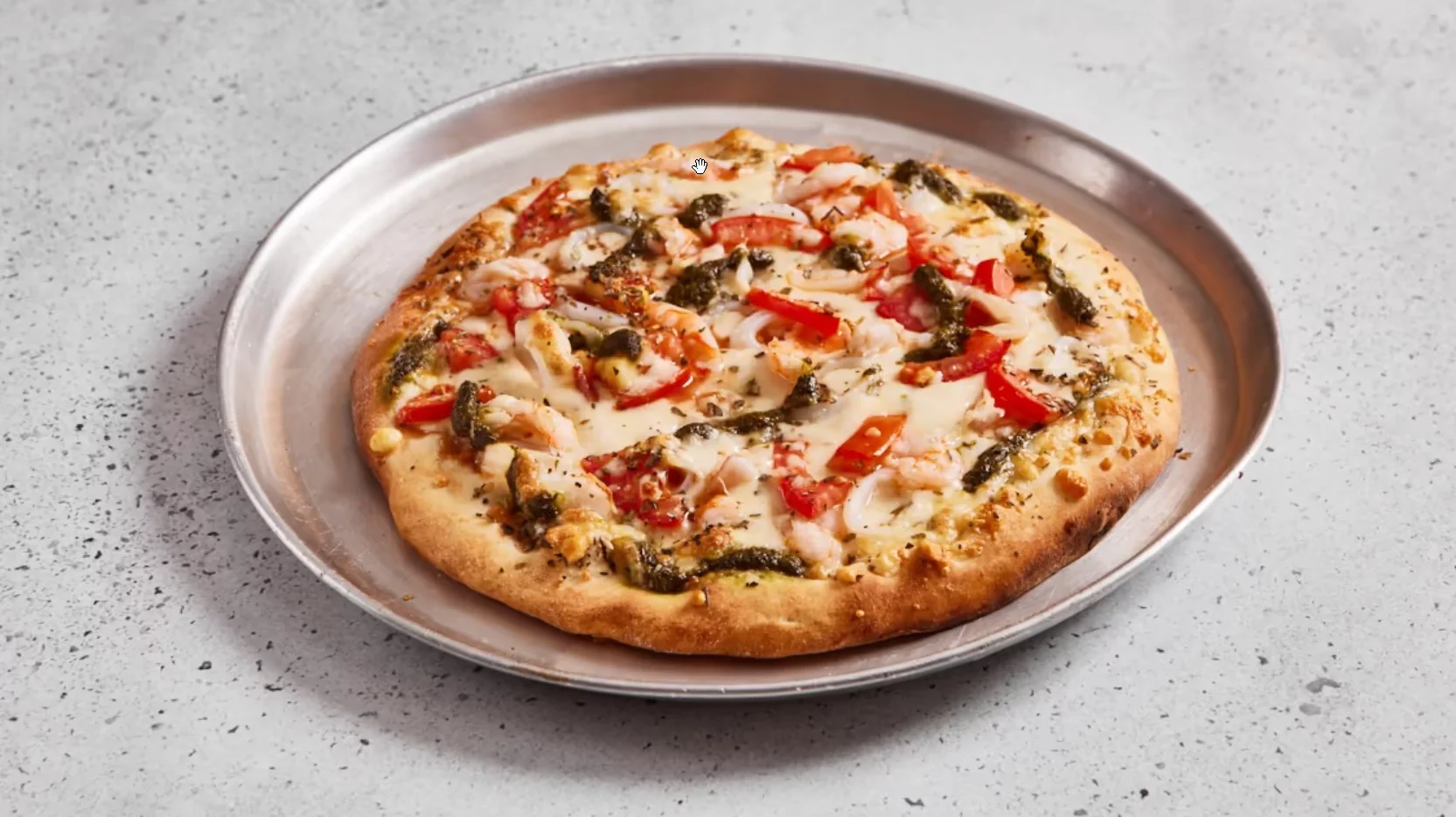 שרימפס, קלמרי, עגבניות, רוטב בזיליקום, שום, גבינה כפולה, אורגנו
